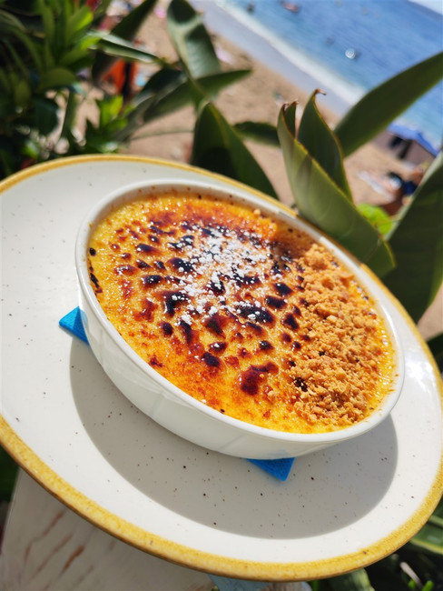 Côté desserts, Stéphane m'engagera selon son goût personnel vers une crème brûlée à la vanille Bourbon, sa pluie de cacahuètes torréfiées, tout d'onctuosité, une manière de conclure un doux instant de félicité …