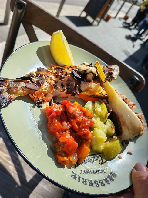 Option choisie par votre humble serviteur, goûter à la friture mayo, (un tout petit peu) aux calamars frits et opter pour une truite aux amandes grillées, son riz vénéré et ses légumes de saison, voilà une version du bistrot à la mode maritime que j'affectionnerais bien volontiers.